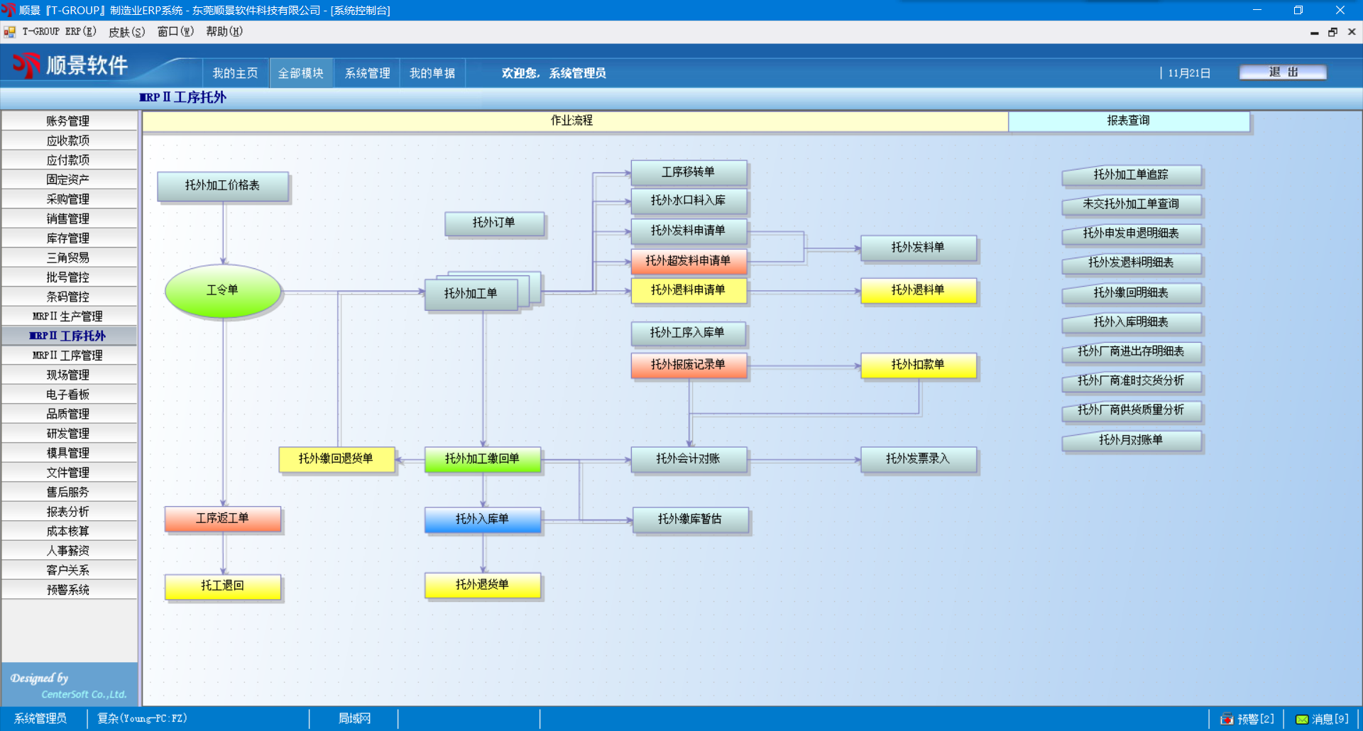 2. 外发材料管理,对于委外加工材料的发出、收回、结存有详细报表反映;